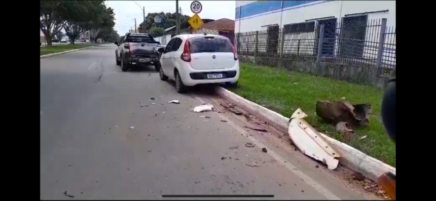 A equipe da PETRAN recebeu informações sobre um acidente na Avenida JK envolvendo dois veículos de passeio. Ao chegar ao local, constatou-se a veracidade das informações. A condutora do veículo Palio estava em estado de choque, necessitando dos atendimento da equipe do SAMU para atendimento.