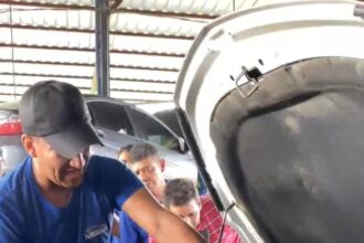 VEJA O VIDEO: Mecânicos acham jibóia de 2 metros dentro de carro no Acre.