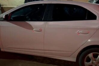 Um carro modelo Onix foi alvo de um ataque a tiros, na…