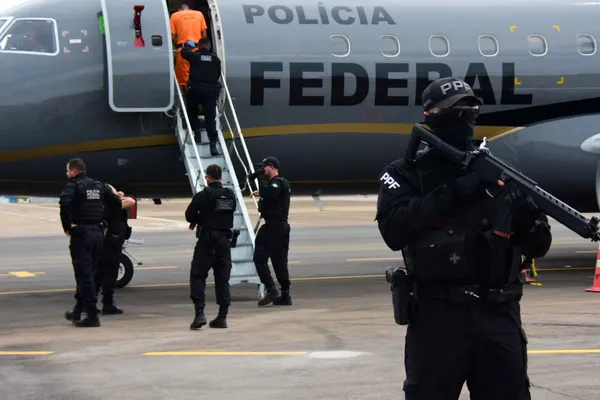 Um avião da Polícia Federal foi usado para transportar os líderes das organizações criminosos de Porto Velho para penitenciárias federais de outros estados. Uma intensa escolta armada foi montada no aeroporto Governador Jorge Teixeira nesta quarta-feira para garantir a segurança do embarque e decolagem.